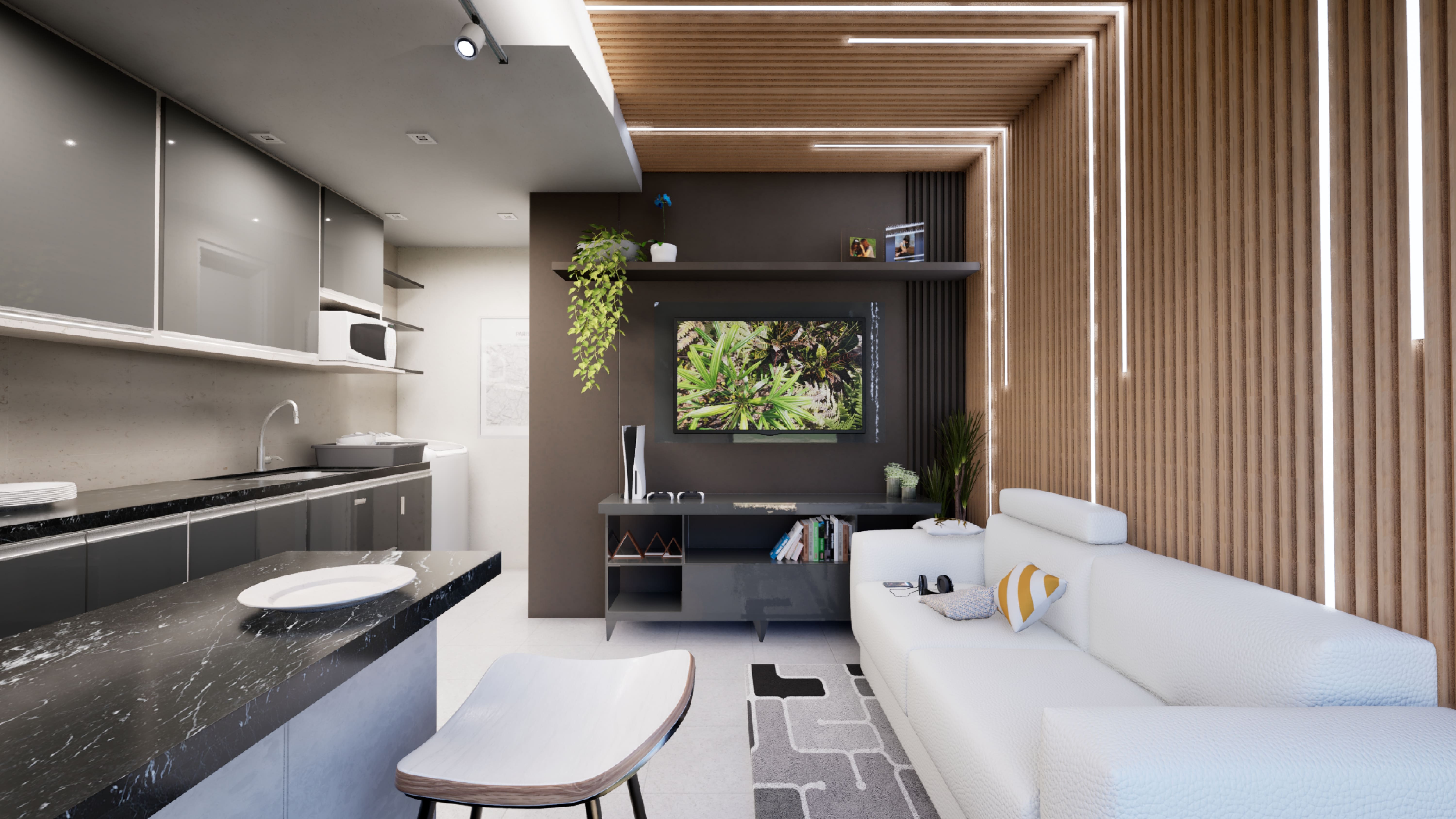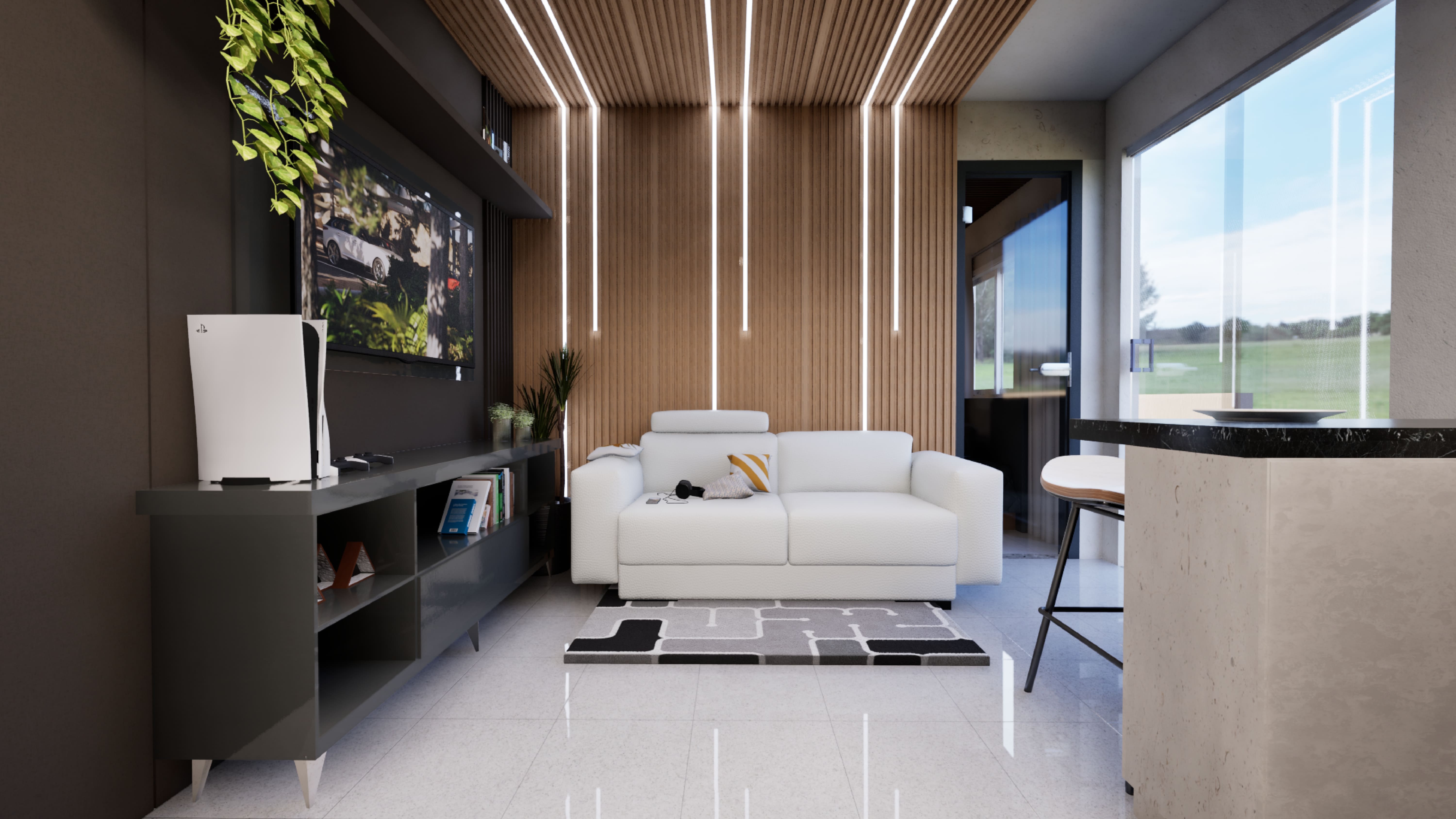 O projeto consistiu na elaboração de uma planta e no desenvolvimento arquitetônico de uma residência que unisse modernidade e acolhimento, atendendo às necessidades de uma família em expansão, que se prepara para receber um bebê. A proposta foi criar um espaço funcional, aconchegante e esteticamente leve, priorizando o conforto e o bem-estar. Para isso, optou-se por uma paleta de tons claros, combinada com elementos em madeira e detalhes em cinza, trazendo equilíbrio visual, sofisticação e uma atmosfera serena aos ambientes.